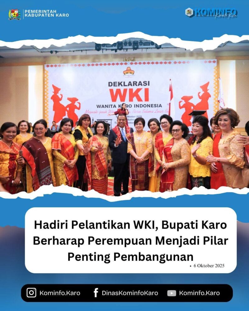 RadarNews.Nasional.com,Medan – Bupati Karo Brigjen Pol (Purn) Dr. dr. Antonius Ginting, Sp.OG., M.Kes menegaskan peran wanita merupakan pilar penting dalam pembangunan bangsa dan negara. Hal itu disampaikan dalam acara Deklarasi dan Pelantikan Dewan Pengurus Pusat (DPP) Wanita Karo Indonesia (WKI) periode 2025–2030, yang berlangsung khidmat di Grand Ballroom Tiara Convention Center, Kota Medan, Senin (06/10/2025).