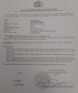 Dalam laporan tersebut disebutkan, sertipikat diketahui hilang pada Rabu, 6 Agustus 2025 sekitar pukul 12.19 WIB di sekitar rumah di wilayah Kertajaya, Padalarang.