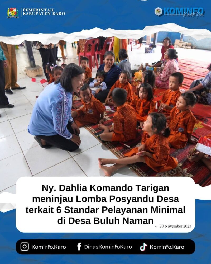 RadarNews.Nasional.com,Kabupaten Karo – Ny Dahlia Komando Tarigan dan Tim Penggerak Pemberdayaan Kesejahteraan Keluarga (TP-PKK) Kabupaten Karo meninjau Lomba Posyandu Desa terkait 6 Standar Pelayanan Minimal di Desa Buluh Naman kecamatan Munte. Kamis, (20/11/2025).