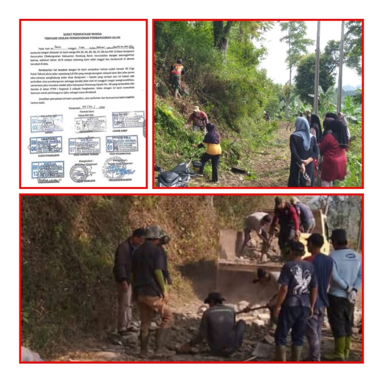 Warga juga telah melengkapi upaya administratif dengan surat pernyataan dan permohonan resmi yang ditandatangani sejumlah Ketua RW dan diketahui oleh Kepala Desa, sebagai bentuk keseriusan dan kebutuhan mendesak pembangunan jalan tersebut.