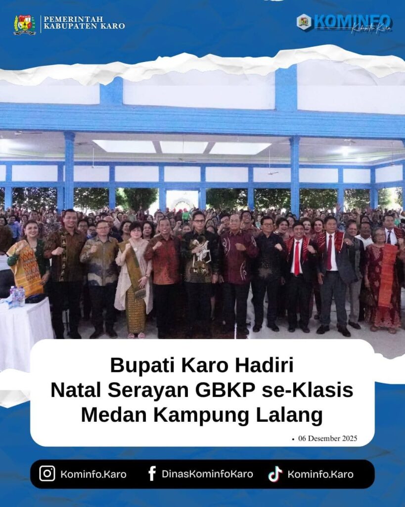 RadarNews.Nasional.com,Medan-Bupati Karo, Brigjen Pol (Purn) Dr. dr. Antonius Ginting, Sp.OG., M.Kes., didanpingi Wakil Bupati Karo, Komando Tarigan, SP, dan Sekretaris Daerah Kabupaten Karo Gelora Kurnia Putra Ginting, S.STP, MM menghadiri Natal Serayan GBKP se-Klasis Medan Kampung Lalang di Jambur Bukit Permai, Sabtu (6/12/2025).
