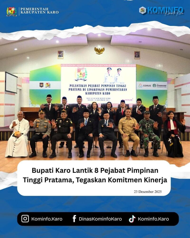 RadarNews.Nasional.com,Kabupaten Karo – Bupati Karo, Brigjen Pol (Purn) Dr. dr. Antonius Ginting, Sp.OG., M.Kes., secara resmi melantik 8 Pejabat Pimpinan Tinggi Pratama (Eselon II) di lingkungan Pemerintah Kabupaten Karo pada Selasa (23/12/2025). Pelantikan ini berlangsung di Aula Kantor Bupati Karo.