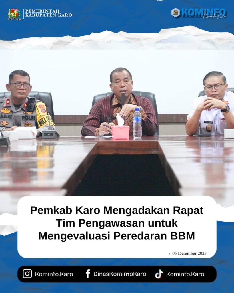 RadarNews.Nasional.com,Kabupaten Karo – Bupati Karo Brigjen Pol (Purn) Dr.dr. Antonius Ginting, SP.OG., M.Kes, didampingi Wakil Bupati Karo, Komando Tarigan, SP, Sekretaris Kabupaten Karo, Gelora Kurnia Putra Ginting, S.STP., MM, pimpin rapat Tim Pengawasan untuk mengevaluasi peredaran BBM mengingat terjadinya kelangkaan BBM saat ini di Kabupaten Karo. Kamis (05/12/2025).
