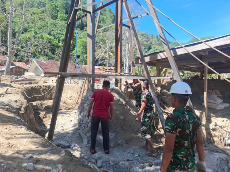 Pasca Hanyutnya jembatan darurat pertama hilang diterjang banjir Anggota Koramil 06/Tripe Jaya Koptu zainal bersama masyarakat melaksanakan gotong royong pembangunan jembatan darurat kedua di desa uyemberiring – Pasir kec,Tripe Jaya Kab, Gayo Lues,