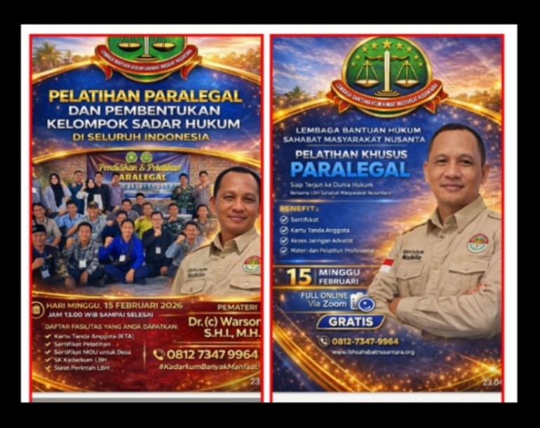 Lembaga Bantuan Hukum (LBH) Sahabat Masyarakat Nusantara kembali menegaskan komitmennya dalam memperkuat kesadaran dan literasi hukum masyarakat dengan menyelenggarakan Pelatihan Paralegal sekaligus Pembentukan Kelompok Sadar Hukum (KADARKUM) di tingkat desa.