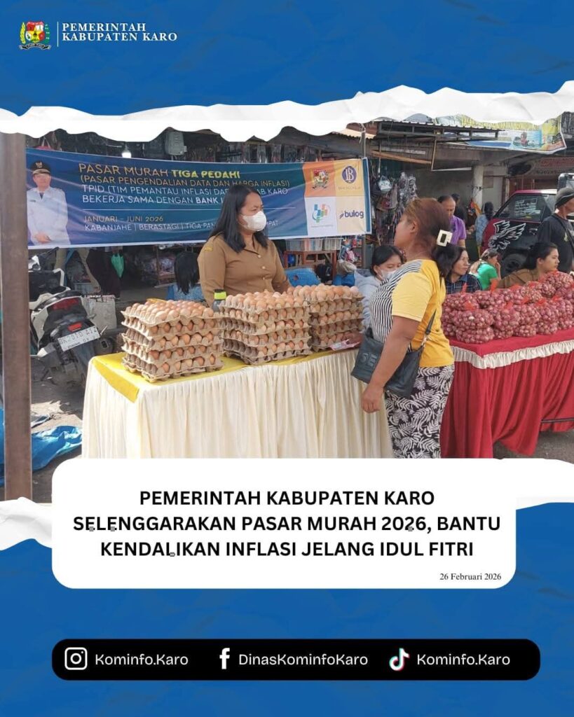 RadarNews.Nasional.com,Kabupaten Karo – Dalam rangka pengendalian inflasi dan membantu masyarakat memenuhi kebutuhan pokok menjelang Hari Raya Idul Fitri 2026, Pemerintah Kabupaten Karo melalui Dinas Perindustrian dan Perdagangan Kabupaten Karo kembali menggelar kegiatan Pasar Murah Tahun 2026. Kamis, (26/02/25).