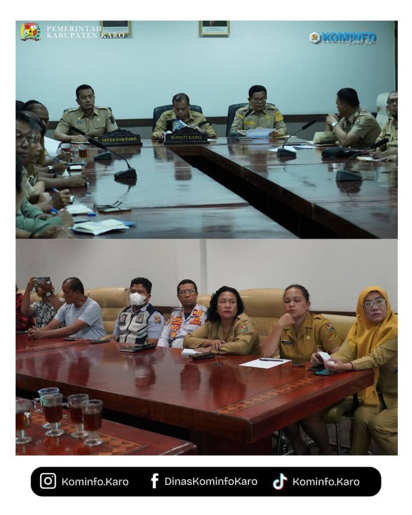 Rapat tersebut turut dihadiri Sekretaris Daerah Kabupaten Karo, Gelora Kurnia Putra Ginting, S.STP., MM, Asisten Pemerintahan dan Kesejahteraan Rakyat, Dr. Drs. Eddi Surianta, M.Pd selaku Ketua Panitia, serta para panitia pelaksana Hari Jadi Kabupaten Karo ke-80 Tahun 2026.