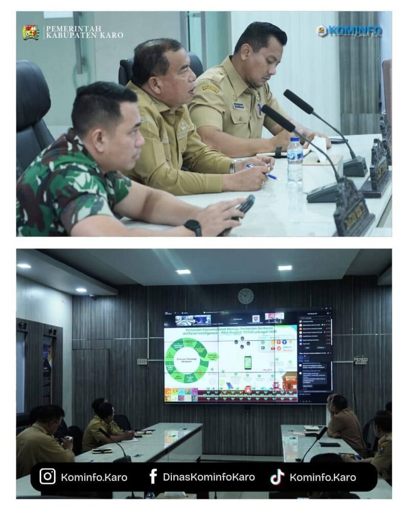 ​RadarNews.Nasional.com,Kabupaten Karo – Bupati Karo, Brigjen Pol (Purn) Dr. dr. Antonius Ginting, Sp.OG., M.Kes, menghadiri rapat koordinasi tingkat tinggi mengenai pengembangan ekosistem pertanian berbasis Artificial Intelligence (AI) secara virtual pada Senin (23/02/2026).