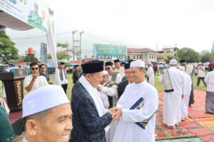 Setelah pelaksanaan sholat, kegiatan dilanjutkan dengan sesi bersalam-salaman (halal bihalal) antara unsur Forkopimda dengan warga masyarakat yang hadir, menunjukkan keharmonisan yang erat di Kabupaten Gayo Lues.