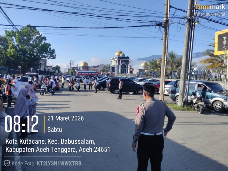 Aceh Tenggara – Dalam rangka memberikan rasa aman dan nyaman kepada masyarakat saat pelaksanaan Hari Raya Idul Fitri 1447 H, jajaran Polres Aceh Tenggara melaksanakan kegiatan pengamanan Sholat Idul Fitri di Masjid Agung At-Taqwa, Kabupaten Aceh Tenggara. Sabtu 21 Maret 2026