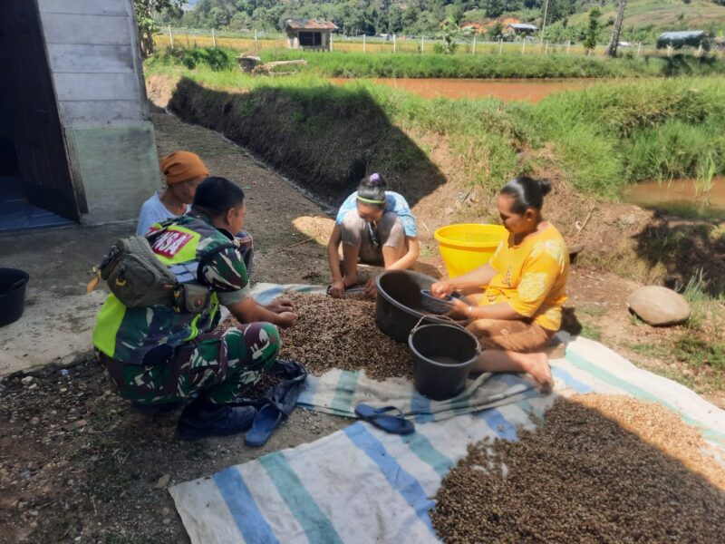 Dukung upaya pemerintah mewujudkan swasembada pangan, Babinsa Koramil 08/Blangpegayon Kodim 0113/Gayo Lues Koptu Dodi melaksanakan Kegiatan Komsos dengan Petani Kopi di Desa Umelah Kecamatan Blangpegayon, Kabupaten Gayo Lues, dalam rangka pembinaan pemberdayaan petani dalam meningkatkan produksi Kopi. Rabu (01/04/2026)