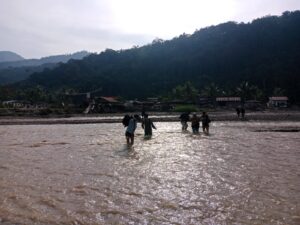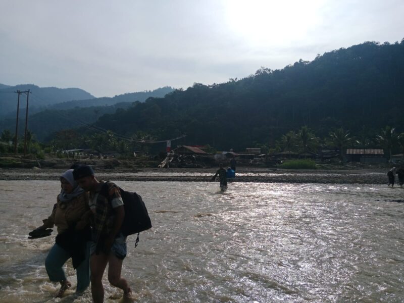 Babinsa Koramil 05/Pining Bantu Warga Menyeberang Akibat Banjir di Gayo Lues