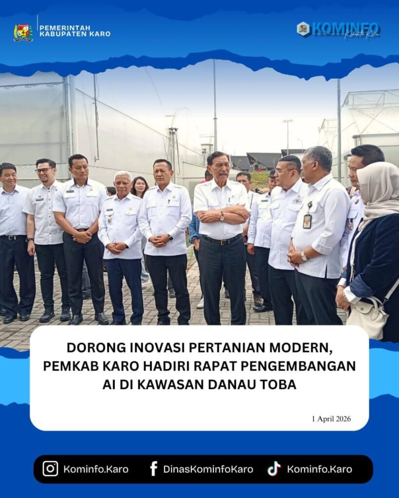 RadarNews.Nasional.com,Humbang Hasundutan – Bupati Karo, Brigjen Pol (Purn) Dr. dr. Antonius Ginting, Sp.OG., M.Kes., diwakili oleh Sekretaris Daerah Kab.Karo Gelora Kurnia Putra Ginting, S.STP., M.M., menghadiri Rapat Pembahasan Pengembangan Pertanian Berbasis Artificial Intelligence (AI) di Kawasan Danau Toba, yang diselenggarakan oleh Dewan Ekonomi Nasional di Kawasan Taman Sains Teknologi Herbal dan Hortikultura (TSTH2) Aek Nauli, Kecamatan Pollung, Kabupaten Humbang Hasundutan, Sumatera Utara, pada Rabu (1/4/2026).