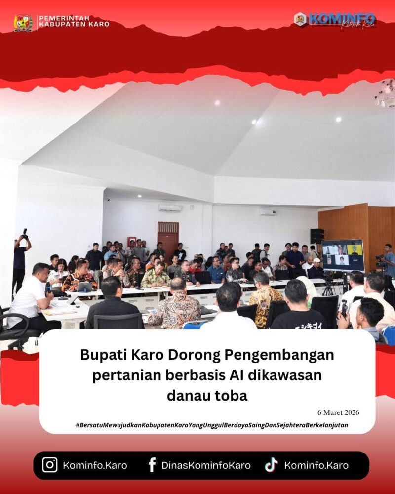 “Bersama Dewan Ekonomi Nasional dan kepala daerah se kawasan Danau Toba, kami kembali berdiskusi terkait pengembangan pertanian berbasis Artificial Intelligence (AI) dan penguatan langkah-langkah strategis untuk kemajuan pertanian di Sumatera Utara. Penerapan sistem AI akan mendorong modernisasi sektor pertanian dan menunjang kebutuhan pertanian. Dengan itu, kita harap dapat meningkatkan hasil produksi sehingga berdampak juga pada peningkatan kesejahteraan para petani, kemajuan daerah, dan ketahanan pangan,” ujar Bupati Karo.