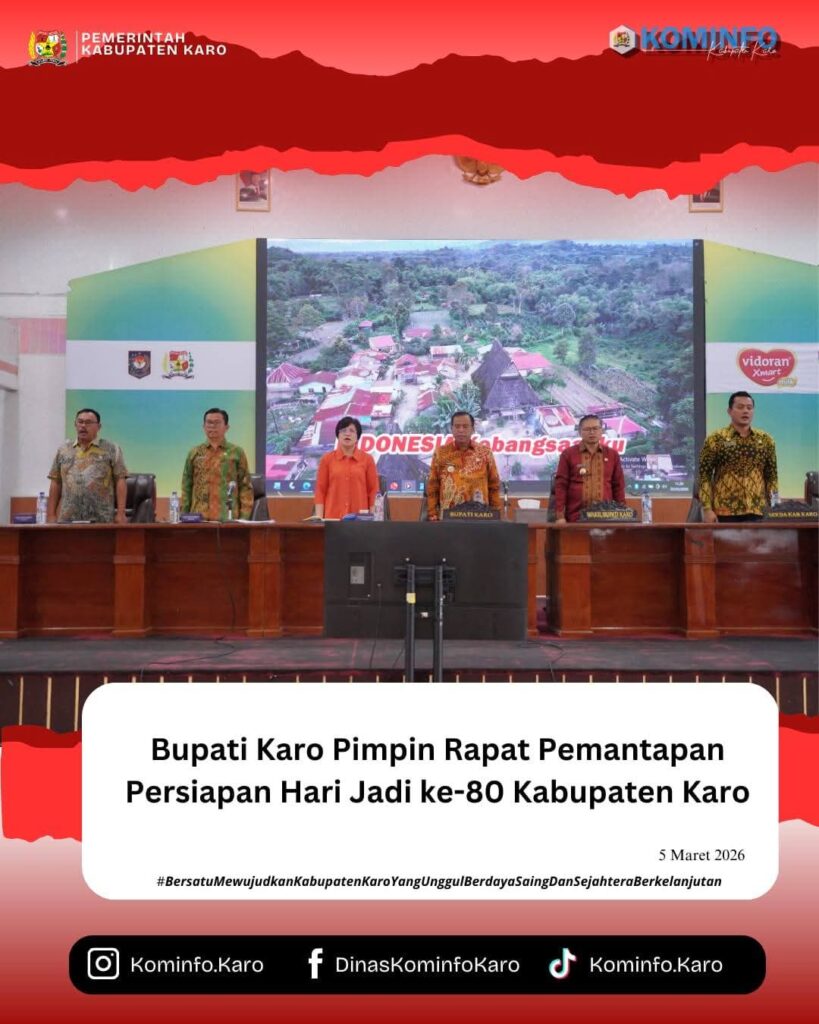 RadarNews.Nasional.com,Kabupaten Karo – Menjelang peringatan Hari Jadi ke-80 Kabupaten Karo, Pemerintah Kabupaten Karo menggelar rapat pemantapan persiapan kegiatan yang berlangsung di Aula Rakutta Sembiring Brahmana Kantor Bupati Karo, Kamis (5/3/2026).