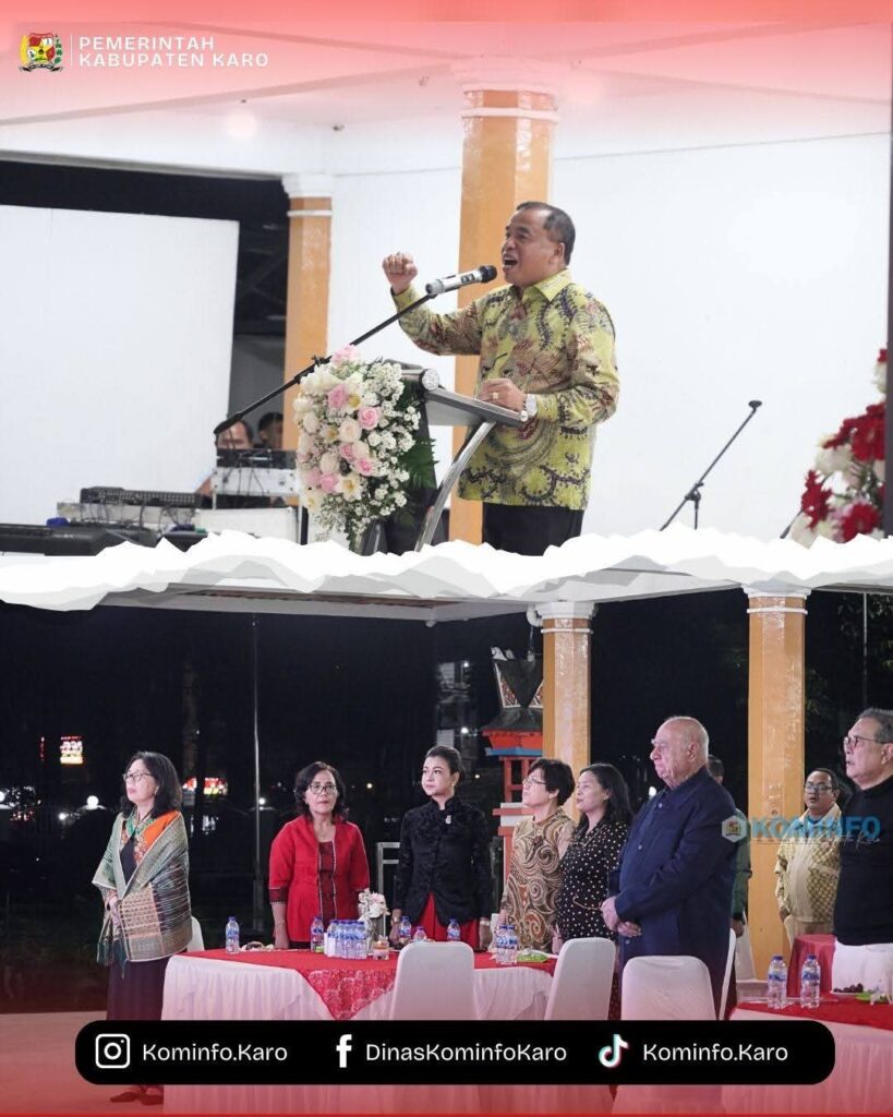 Menutup sambutannya, Bupati Karo menyampaikan harapan agar seluruh elemen masyarakat dapat terus bersinergi dalam mewujudkan kemajuan Kabupaten Karo.