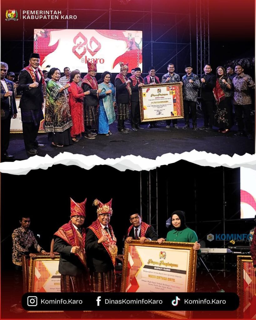 RadarNews.Nasional.com,Kabupaten Karo – Bupati Karo, Brigjen Pol. (Purn) Dr. dr. Antonius Ginting, Sp.OG., M.Kes. menyerahkan Piagam penghargaan Kepatuhan Wajib Pajak Tahun Pajak 2025 pada Puncak Hari Jadi Kabupaten Karo yang ke -80 kemarin yang dilaksanakan di Stadion Samura Kabanjahe (8/3/2026), langkah ini bertujuan untuk meningkatkan motivasi, Kepatuhan dan kontribusi wajib pajak terhadap pembangunan daerah.