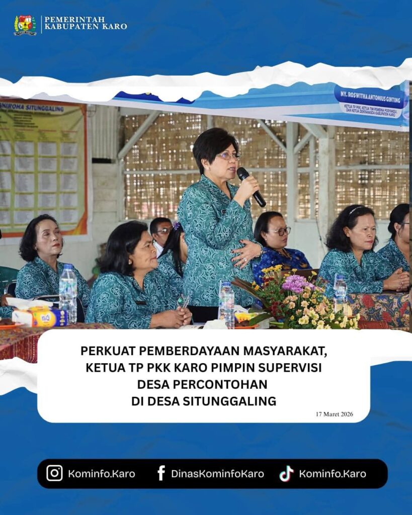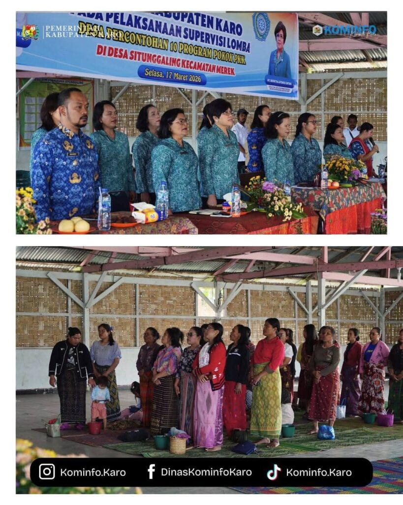 RadarNews.Nasional.com,Kabupaten Karo – Ketua Tim Penggerak Pemberdayaan Kesejahteraan Keluarga (TP PKK) Kabupaten Karo, Ny. Roswhita Antonius Ginting, memimpin langsung pelaksanaan Supervisi Lomba Desa Percontohan 10 Program Pokok PKK tingkat Kabupaten Karo di Desa Situnggaling, Kecamatan Merek, Selasa (17/03/2026).