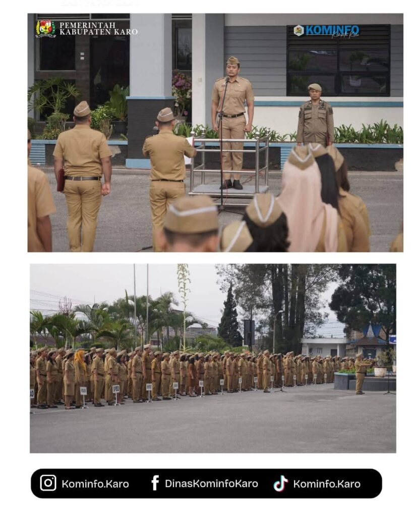 RadarNews.Nasional.com,Kabupaten Karo – Mewakili Bupati Karo, Brigjen Pol (Purn) Dr. dr. Antonius Ginting, Sp.OG., M.Kes, Sekretaris Daerah (Sekda) Kabupaten Karo, Gelora Kurnia Putra Ginting, S.STP, MM, memimpin Apel Gabungan Aparatur Sipil Negara (ASN) di lingkungan Pemerintah Kabupaten Karo. Kegiatan berlangsung khidmat di halaman Kantor Bupati Karo, Senin (02/03/2026).
