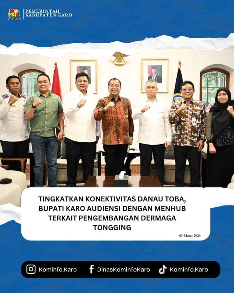 RadarNews.Nasional.com,Kabupaten Karo – Bupati Karo, Brigjen Pol (Purn) Dr. dr. Antonius Ginting, Sp.OG., M.Kes, melakukan kunjungan kerja dan audiensi dengan Menteri Perhubungan Republik Indonesia di Jakarta, Selasa (03/03/2026). Pertemuan strategis ini bertujuan untuk mempercepat pengembangan infrastruktur transportasi di Kabupaten Karo guna mendukung Kawasan Strategis Pariwisata Nasional (KSPN) Danau Toba.
