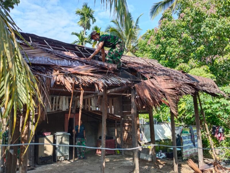 Satgas TMMD ke-128 Bongkar Atap Rumbia di 5 RTLH Gunung Cut