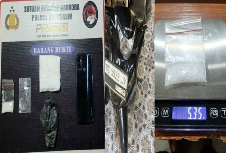 Banyuasin – Jajaran Satuan Reserse Narkoba (Satresnarkoba) Polres Banyuasin kembali mengungkap kasus tindak pidana narkotika. Seorang pria berinisial ESS (47) , warga Desa Meranti, Kecamatan Suak Tapeh, Kabupaten Banyuasin, diringkus di pinggir jalan Desa Biyuku, Kecamatan Suak Tapeh, pada Rabu (22/4/2026) sekitar pukul 17.00 WIB. Dari tangan pelaku, petugas menyita barang bukti berupa satu paket narkotika jenis sabu dengan berat bruto 5,35 gram.