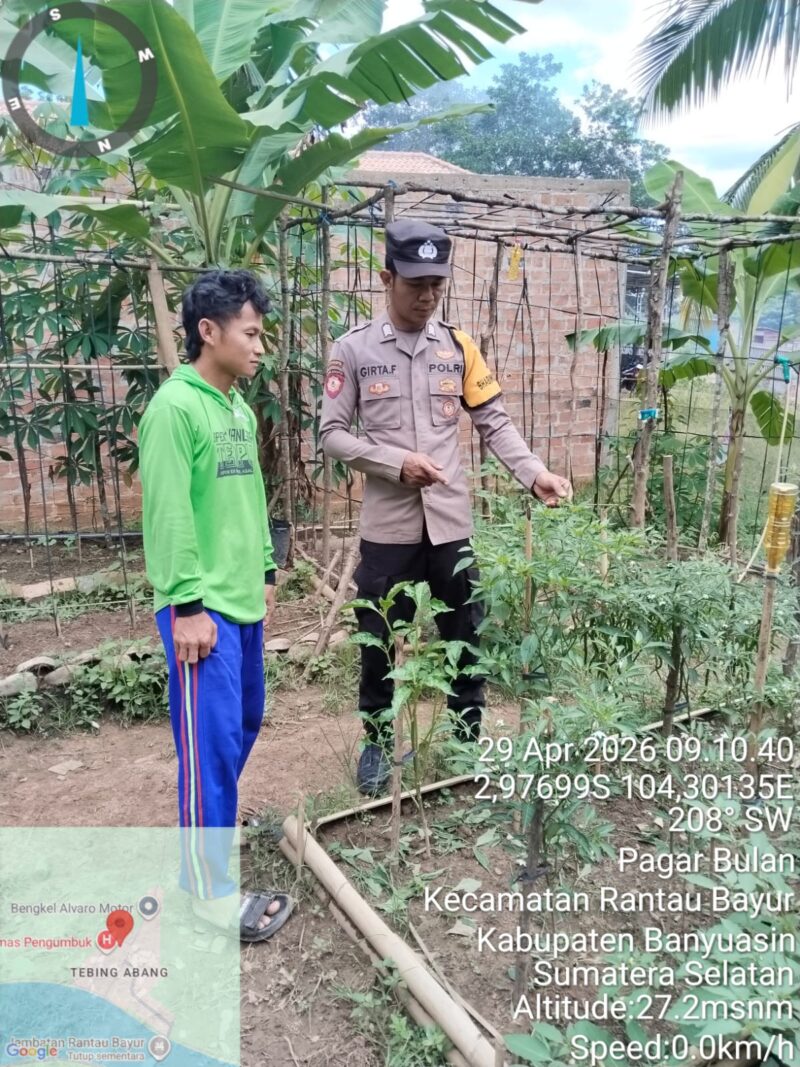 Banyuasin – Dalam upaya mendukung program strategis Presiden RI di bidang ketahanan pangan, Bhabinkamtibmas Polsek Rantau Bayur Polres Banyuasin menggelar kegiatan imbauan dan penggerakan masyarakat di Desa Tebing Abang, Kecamatan Rantau Bayur, Kabupaten Banyuasin, pada Rabu siang (29/4/2026).
