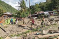 Babinsa Koramil 06/Tripe Jaya Serma Eka Febrisandi gotong royong membersihkan sisa material bersama warga desa binaan bertempat di desa Uyem Beriring kecamatan Tripe…