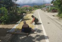 Babinsa Koramil 08/Blangpegayon Kodim 0113/ Gayo lues Koptu Karmadi membantu warga binaanya menjemur biji kopi di Desa porang Ayu Kecamatan Blangpegayon Kabupaten Gayo…