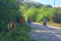 GAYO LUES-Babinsa Koramil 01/Terangun jajaran Kodim 0113/Gayo Lues, Kopda Hendra sitepu bersama warga masyarakat melaksanakan kegiatan kerja bakti sosial membersihkan Bahu jalan dan…