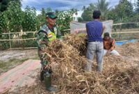 GAYO LUES-Serda Zulkifli anggota Koramil 08/ Blang pegayon Kodim 9113/ Gayo lues bersama masyarakat desa binaannya melakukan panen kedelai di Desa Kong, Kecamatan Blang…