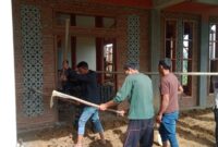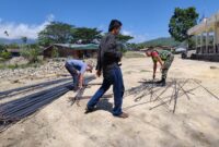 Bintara Pembina Desa (Babinsa) Koramil 08/ Blangpegayon, Kodim 0113/ Gayo Lues melaksanakan gotong royong membangun Masjid bersama warga di Desa Bener Baru, Kecamatan…